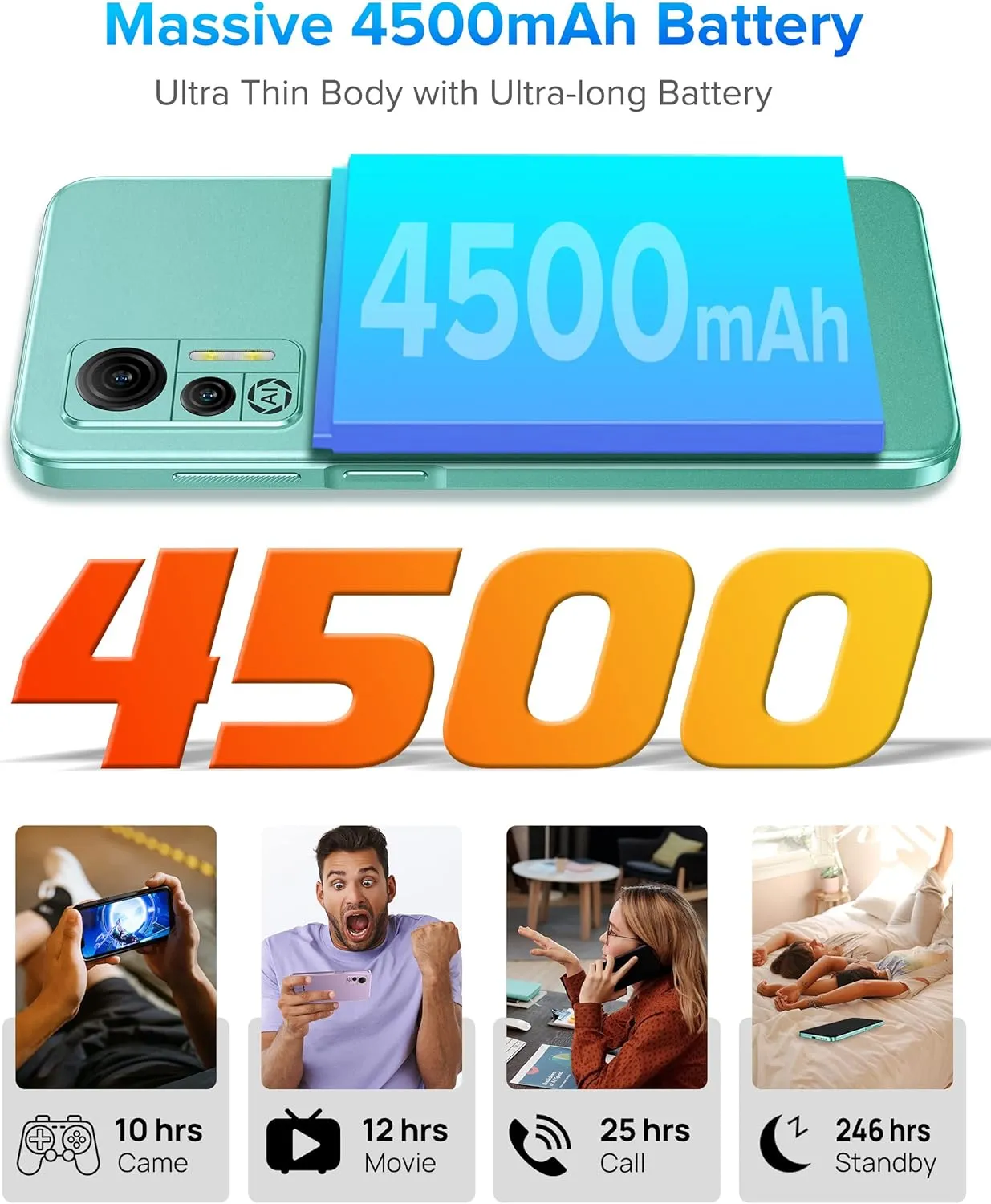 A trendy flat frame and the unified color scheme design, together with a 189g light and 8.95mm slim body, make every interaction a delight, even packing a massive 4500mAh battery.