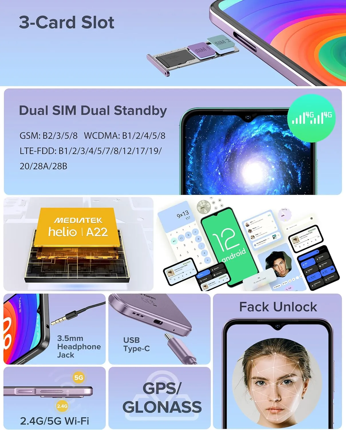 Support Nano sim*1 + Nano sim*1 + TF card*1(up to 128GB)Compatible with T-Mobile and its MVNOs – including Metro PCS, Mint Mobile and others. (Not compatible with AT&T, Cricket or with CDMA Networks like Verizon, Sprint, and Boost Mobile)Check compatibility with your local bands before purchase! ulefone note 14 unlocked phones unlocked smartphone unlocked cell phone android phoneulefone note 14 unlocked phones unlocked smartphone unlocked cell phone android phone Face Unlock | Multiple Navigation Systems