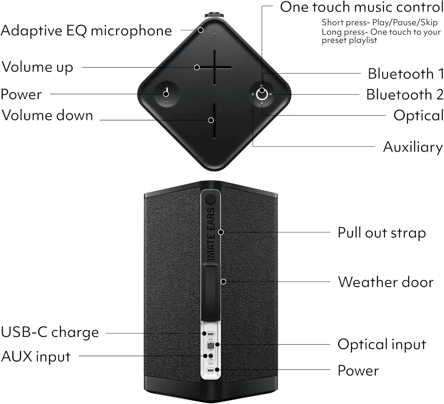 Adaptive Equalizer: These party speakers do all the heavy lifting to rock pitch-perfect audio; its adaptive EQ literally reads the environment and customizes sound.