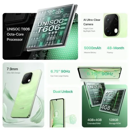 UMIDIGI G9T 8GB+128GB 6.75” Octa Core Android 14 Dual SIM Unlocked Smartphone
