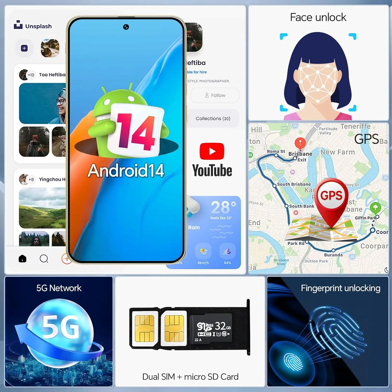 【5g Speed And Dual Sim】Switch between work and personal phone numbers with a tap using dual 5G SIM cards. Download 1GB movies in 8 seconds, play 4K streams without buffering, and face/fingerprint unlock ensures everything is secure – faster than you can say “Please protect your privacy!” Faster!