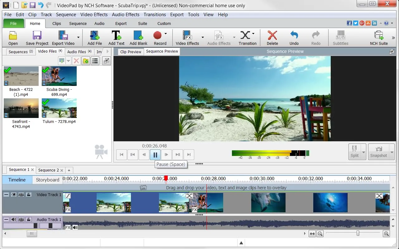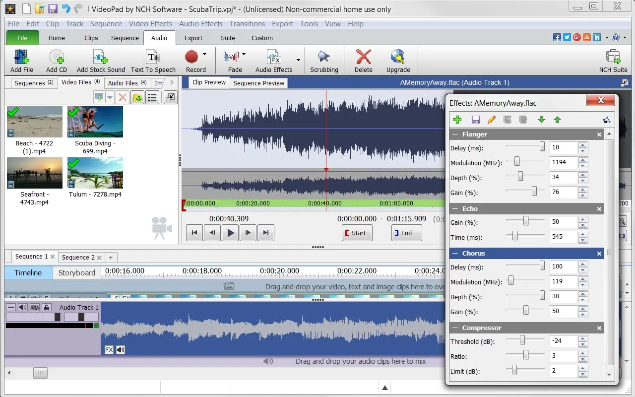 Record or add audio clips to your video, or simply pull stock sounds from the NCH Sound Library.