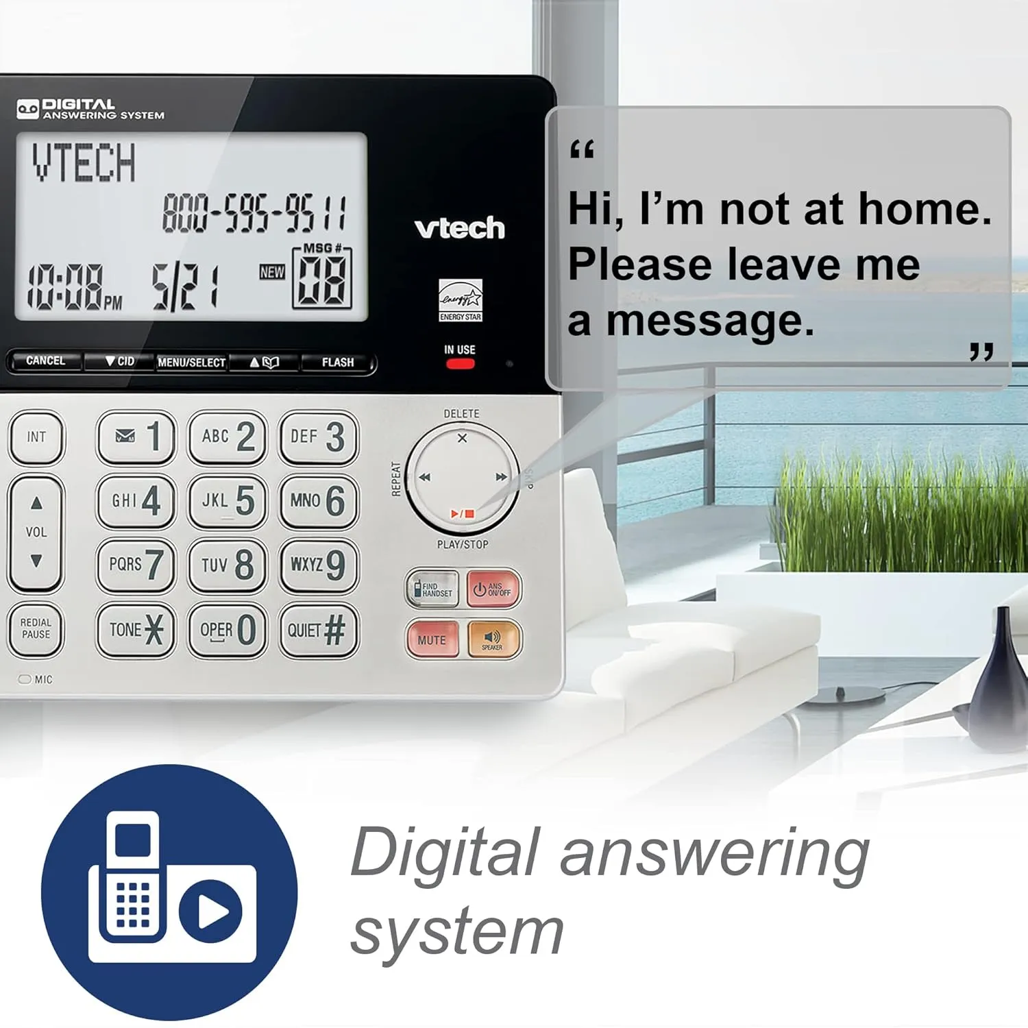 [Get Messages on Answering Machine when not around] Integrated digital answering device is easily accessible from the base unit, cordless handset and remotely. System record up to 22 minutes of incoming messages, outgoing announcements and memos.