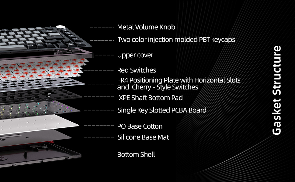 【🎯Gasket-Mounted Excellence】Experience superior craftsmanship with WJX gaming keyboard advanced gasket-mounted construction, complete with an silicone pad and precisely engineered PCB single key slots. This design enhances durability and stability while delivering a softer and more elastic keystroke. A sophisticated five-layer sound-dampening system minimizes noise by sealing gaps between the PCB, plate, and switches, yielding a refined acoustic profile for both gaming and prolonged typing.
