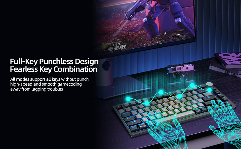 【🖱️Compact Ergonomic Design】Embrace efficiency with compact 82-key, which incorporates a high-grade metal volume knob for instant audio control and mute functionality. Featuring full N-Key Rollover technology, it guarantees zero input delay for seamless performance during fast-paced gaming or detailed work. Its ergonomic, curved design minimizes wrist strain, ensuring lasting comfort and swift responsiveness, making it the perfect fusion of dynamic functionality for extended daily use.