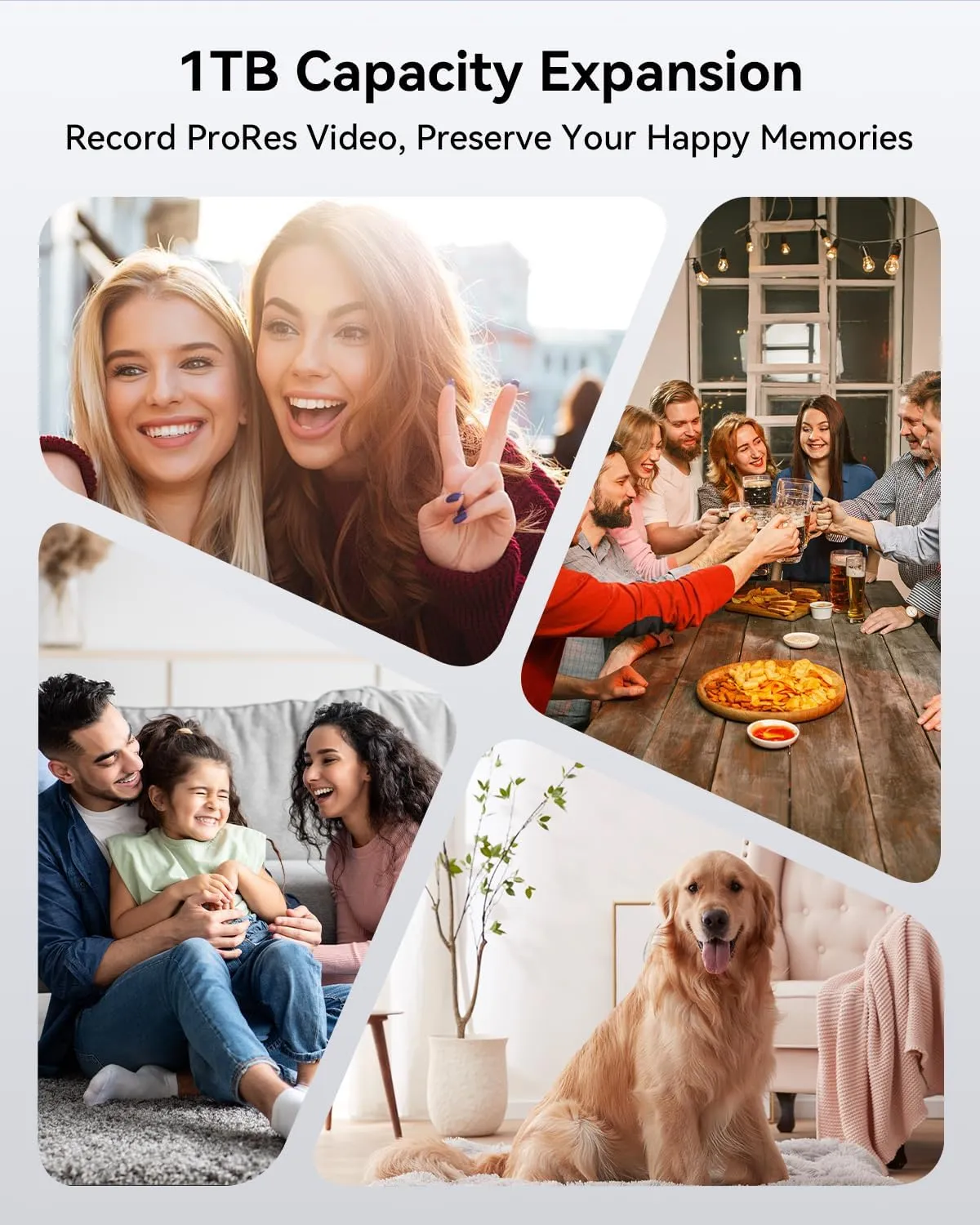 【Supports 4K ProRes Video Recording】Magnetic external solid state drive supports 4K ProRes video recording on iPhone 15/16 Pro/Max. Magsafe ssd 1tb enables real-time recording and storage without needing a secondary transfer, allowing you to capture beautiful moments in your life at any time.
